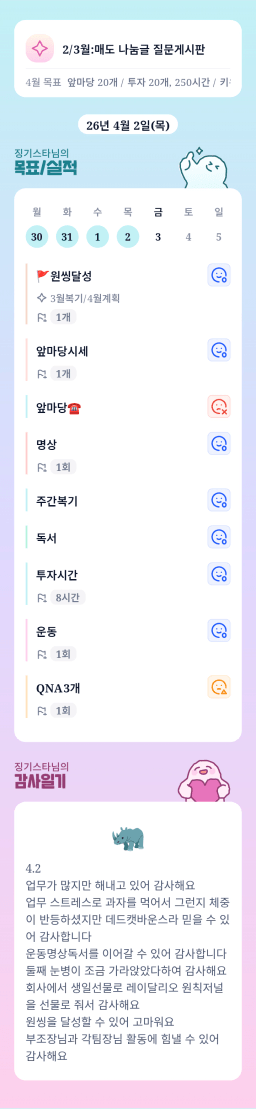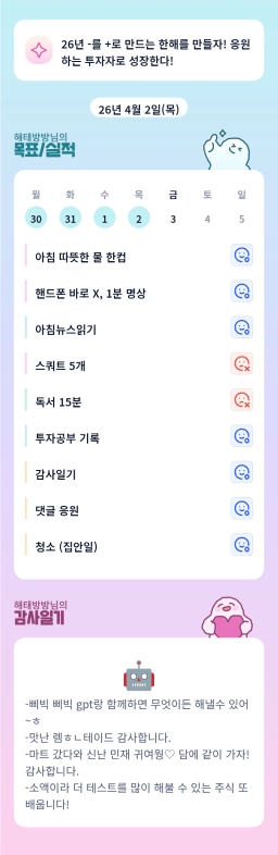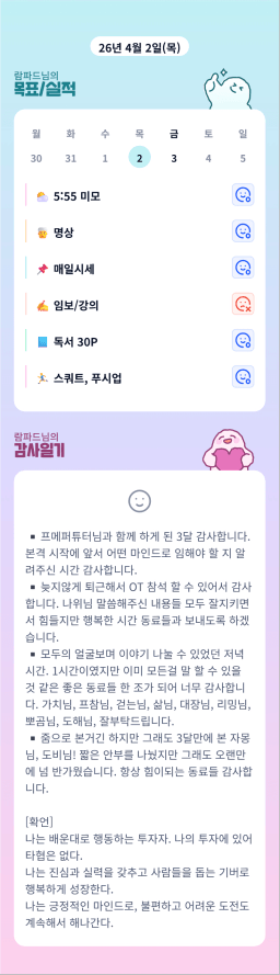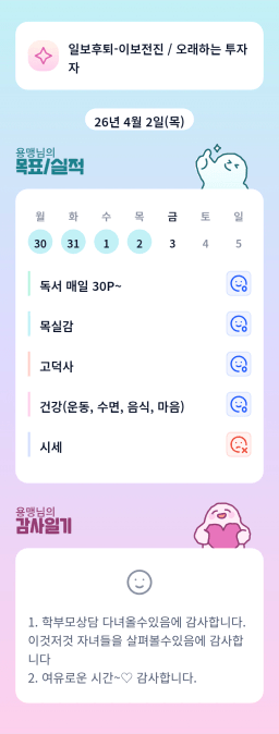 [배배영] 4.2 목실감 누적 168일, 연속 5일 진행중