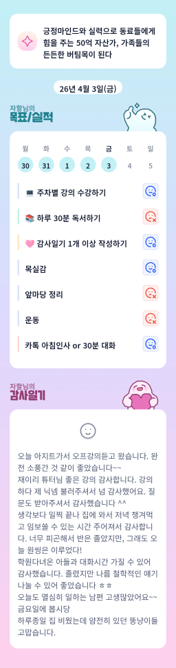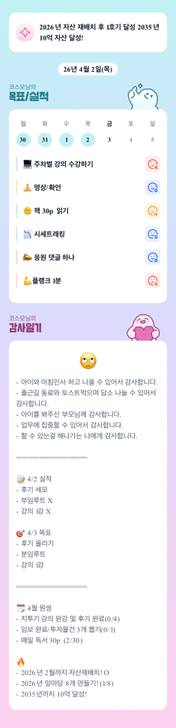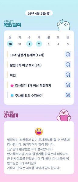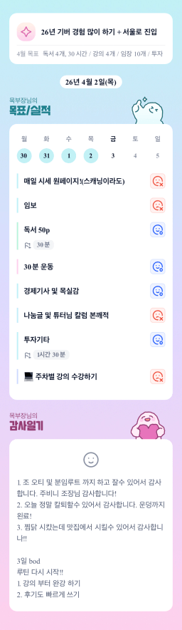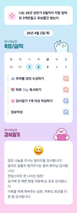 [지실반28기올4월엔빌리블라썸_하나씩] 260402목실감 누적 60일, 연속 3일 진행중