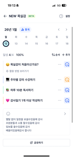 [셀리나7] 2026. 1. 5(월)~2026. 1. 11(일) 주간목실감