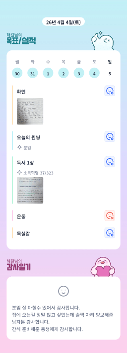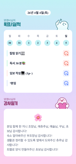 [해길] 26.04.04. 목실감 누적 78일, 연속 7일 진행중