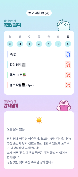 [나는 할 수 있다! 양갱91] 4/5 목실감 누적 95일, 연속 8일 진행중