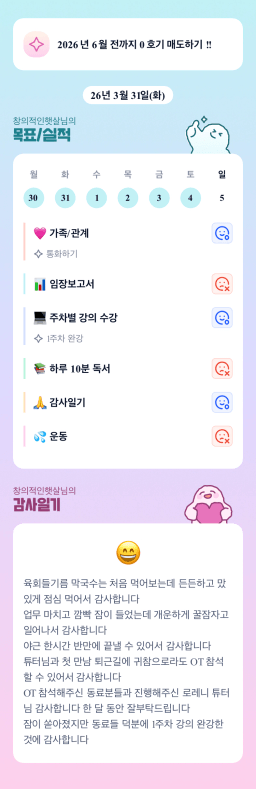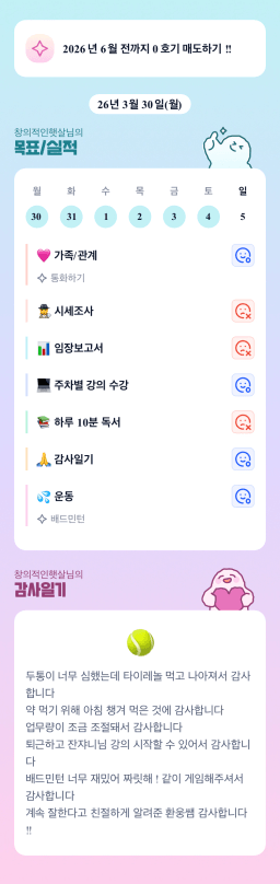 [창의적인햇살] 목실감 누적 202일, 연속 201일 진행중