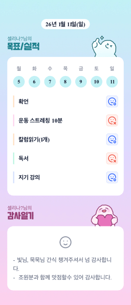 [셀리나7] 2026. 1. 11(일) 목실감