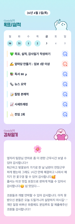 [Genie] 목실감 누적 168일, 연속 124일 진행중, 4/2