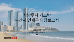 [지기 32기 부산 앞마당 방3화2 4베이 다털고 오ㅇ1소 멈추지말고달려] 부산광역시 연제구 임장보고서