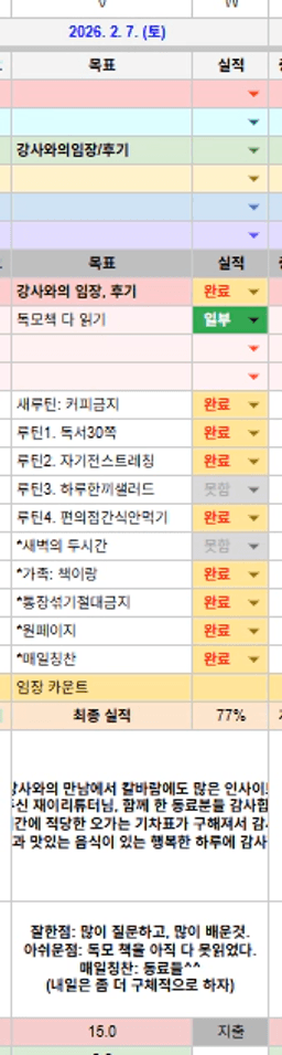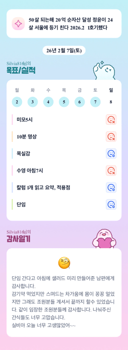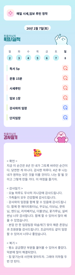2/7 목표, 실적, 감사일기, 시간가계부 [주시부]