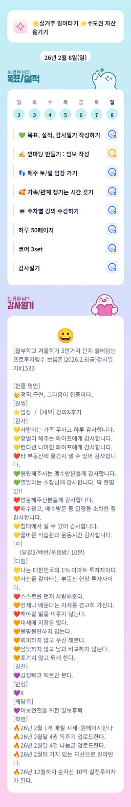 [월부학교 겨울학기 5만가지 단지 쓸어담는 프로투자멩수 브롬톤]2026.2.6(금)감사일기#1533