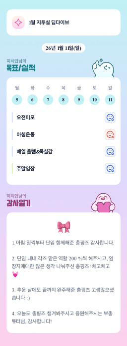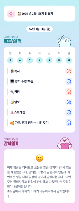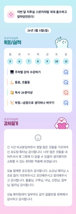[지투27기 지금 2순간 아라메르 튜터님과 함께라면 4채도 거뜬하조 행동하기] 1/10-1/11 목실감