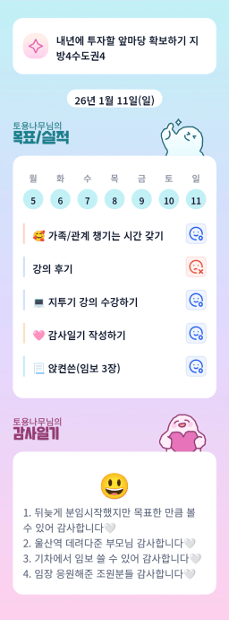 [지방투자 실전반 27기 총총 뭉쳐서 부 한번 15켜보조 피치업] 매일 목실감 1/10-11