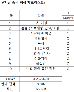 [해로] 월부챌린지 725회 진행중 : 4월 1일차 - 30일 습관챌린지 (1/25)