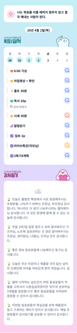 [내마실5기 재이리픽 재01ㄹ1치들 순자] 26.04.01