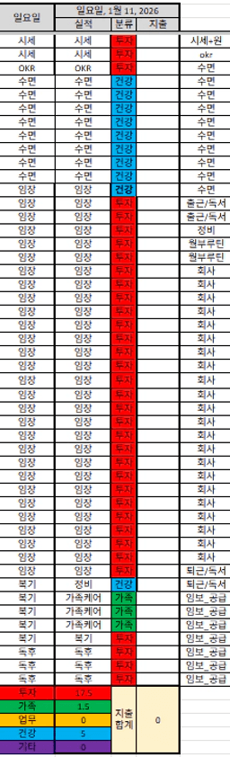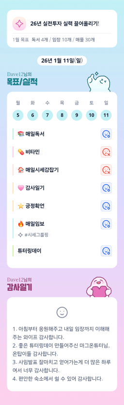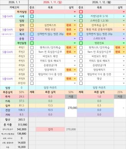 26년 1/12 목표,실적,감사일기,시간가계부[헤라클래스]