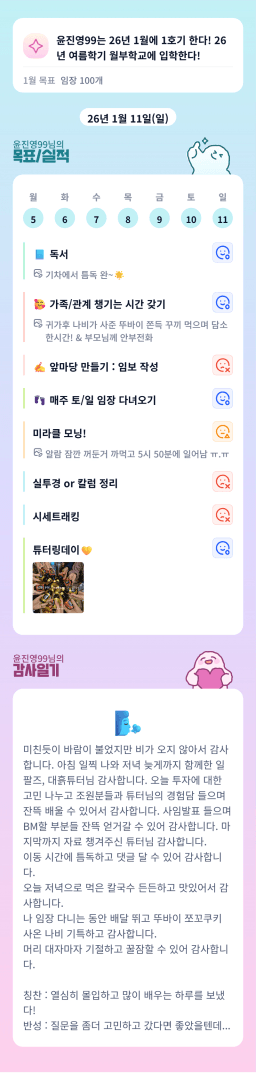 [지투27기 대흙력 만렙 18s 윤진영99] 1월 11일 목실감칭반