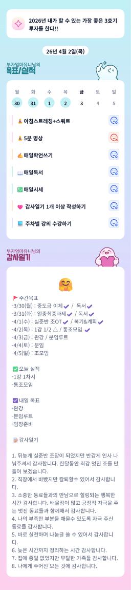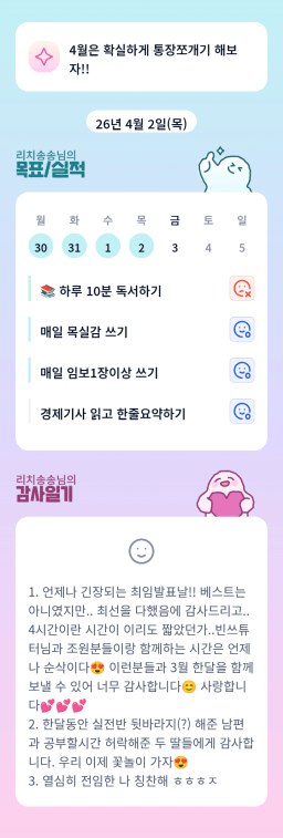[리치송송] 목실감 누적 63일, 연속 30일 진행중(4/2)