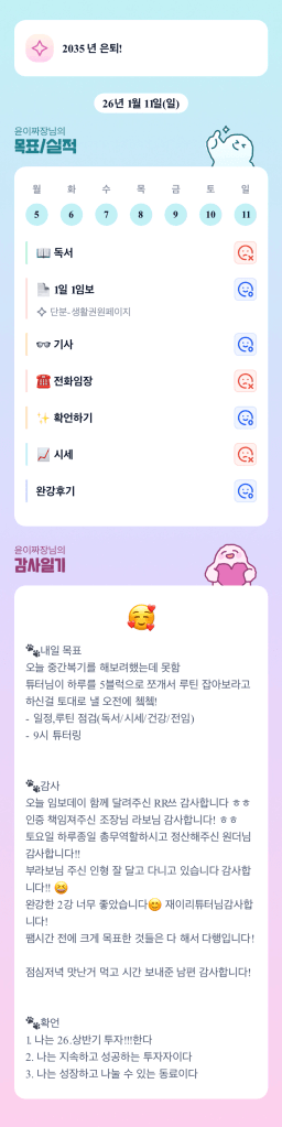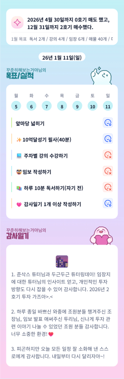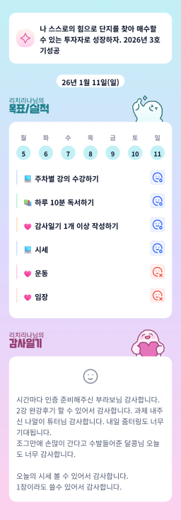 [지투실전 27기 쑤튜님과함께 🌱쑤욱쑤욱 성장하는 2린0ㅣ들 티끌모아부자]26.01.11. 목실감