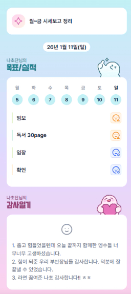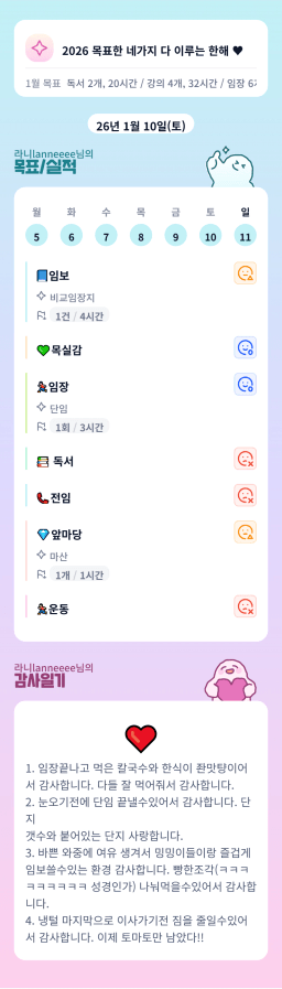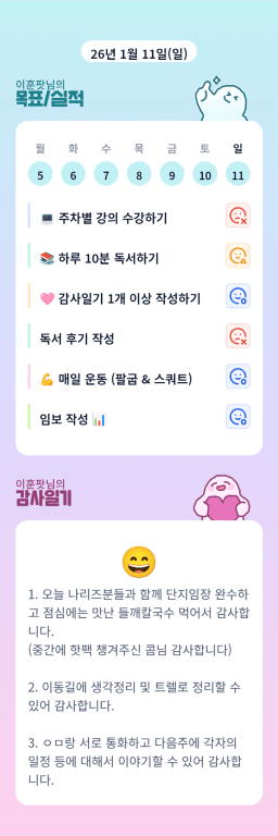 [실준반 72기 72개월 동안 앞마당 5️⃣0️⃣개 가능하조❤️ 꿈찾자] 26.1.11 목실감