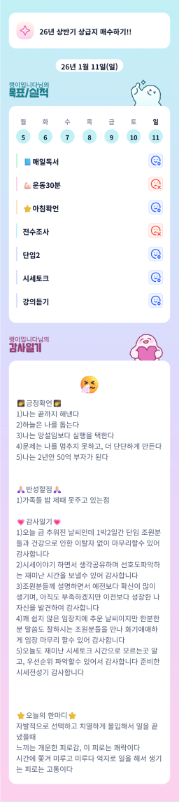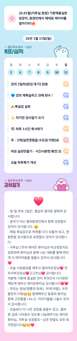 [지투실 27기 제이(J)든 피(P)든 볶든 튀기든 성공할 5조_-골든투모로우-] 매일목실감 26.01.11