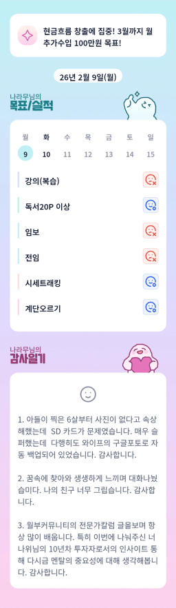 [실전 34기 🚨삐용삐용 24시간 투자 아라메르 울리조🚨 도롱이다] 목실감 - 20260209
