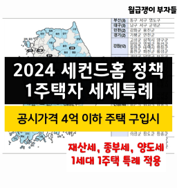 2024 세컨드홈 부동산 정책 (1주택자 세제 특례, 대상 지역, 4억 이하) 인구감소지역 부활 3종 프로젝트
