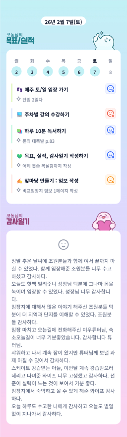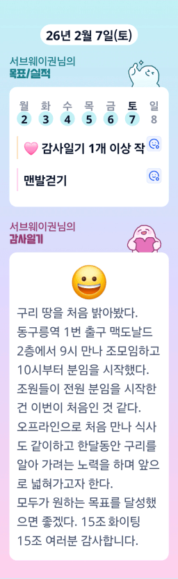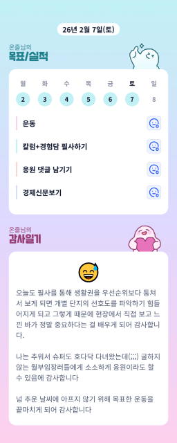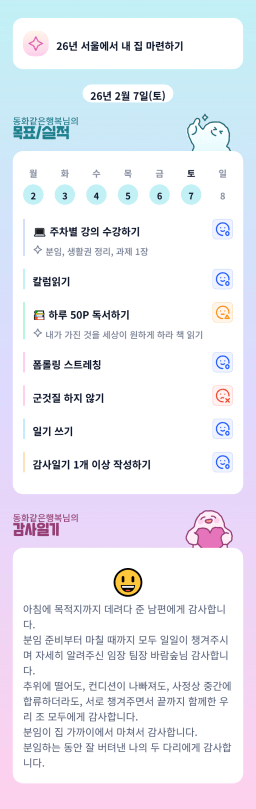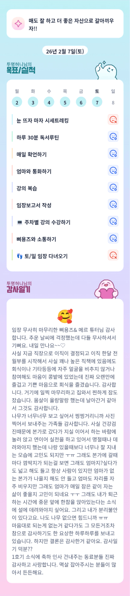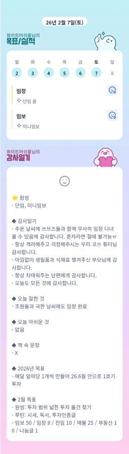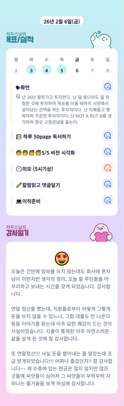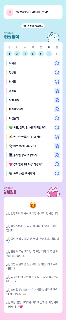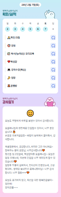 [행복한금붕이] 매일목실감 (20260207) D+288