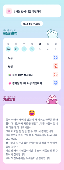 [해피찌니v] 목실감 누적 3일, 연속 1일 진행중