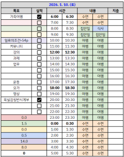 [짱이사랑맘] 1/10 목실감칭반시계부
