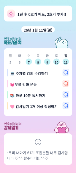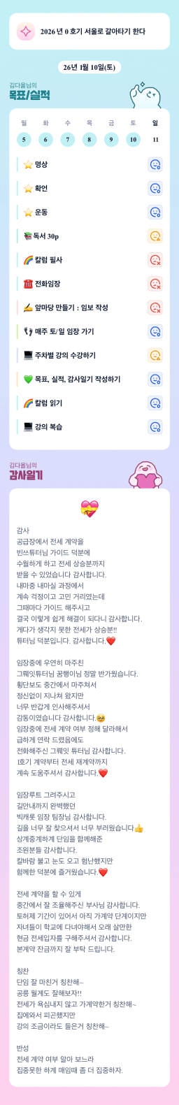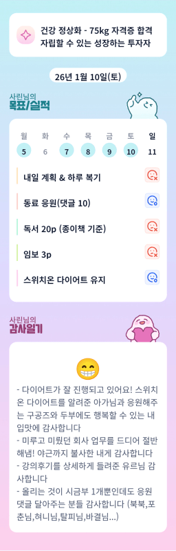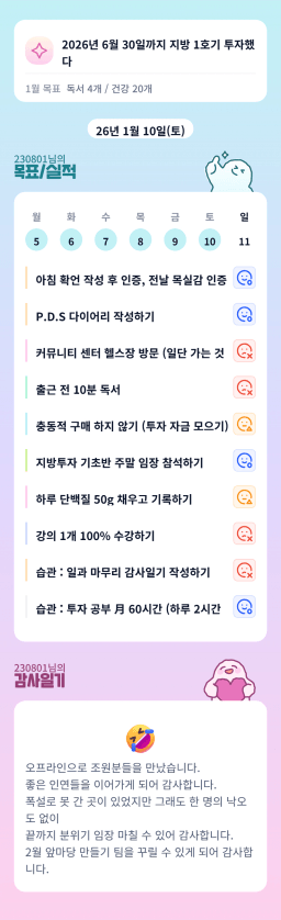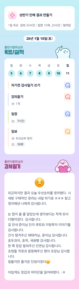 [실준반 72기 72개월 동안 앞마당 5️⃣0️⃣개 가능하조❤️ 꿈찾자] 26.1.5 ~ 26.1.10 목실감