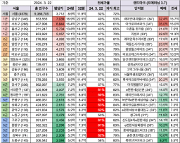 [30억부쟈] 전국 전세가율 & 평당가 (3월 22일 기준)