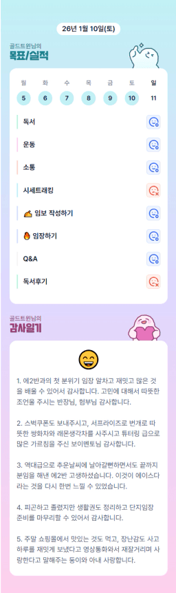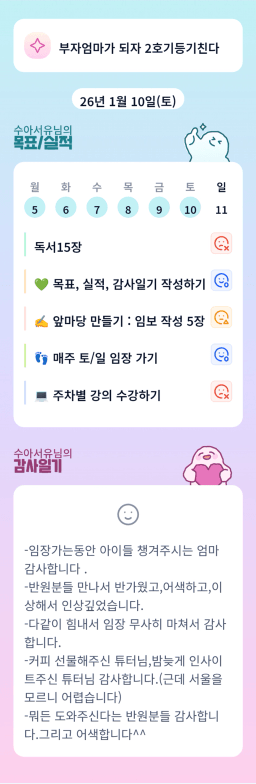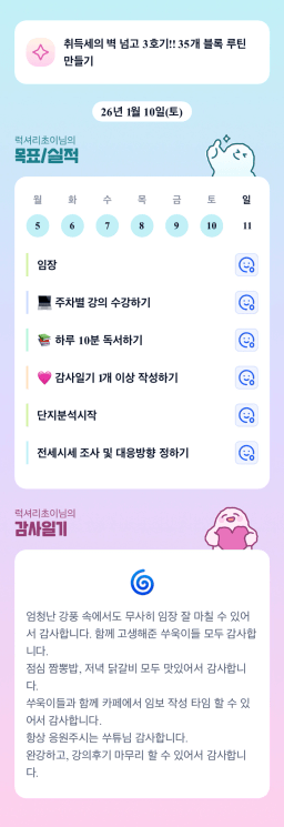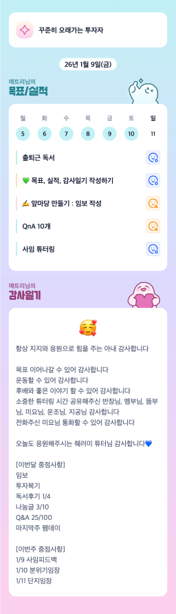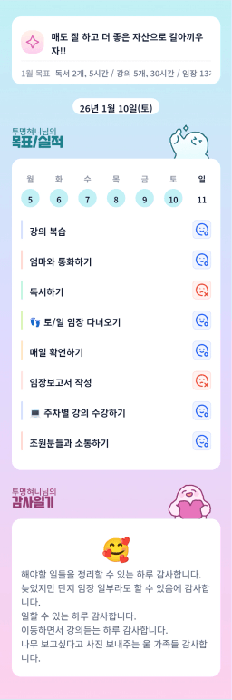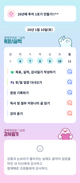[지투실전 27기 쑤튜님과함께 🌱쑤욱쑤욱 성장하는 2린0ㅣ들/독서TF3조 럭셔리초이] 매일목실감 26.01.10