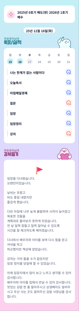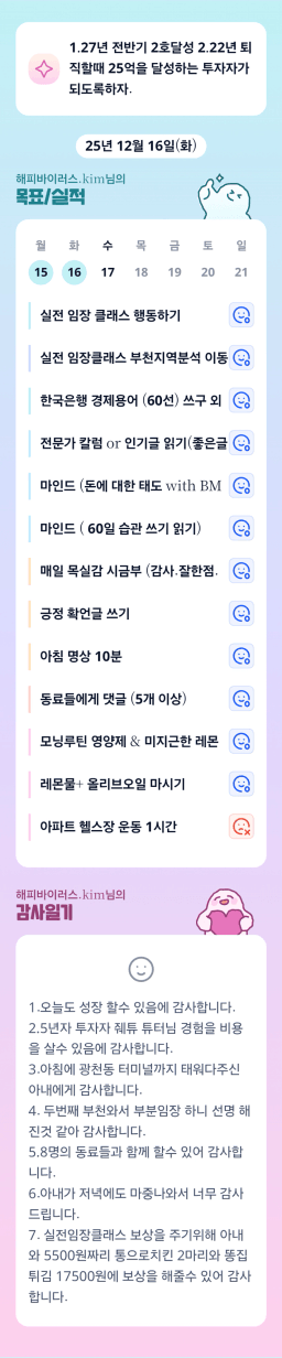 [내마실 엔젤빈쓰 튜터님과 함께하니 4주? 아니조~ 3주만에 내집마련 성공했조 김다올] 25.12.16.(화) 목실감