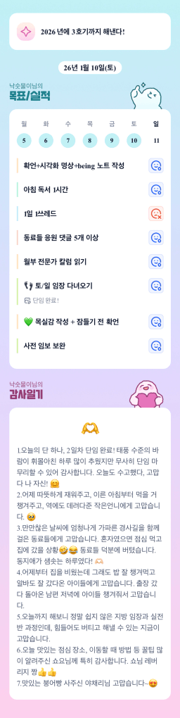 [지투실전 27기 쑤튜님과함께 🌱쑤욱쑤욱 성장하는 2린0ㅣ들/독서TF3조 럭셔리초이] 매일목실감 26.01.10