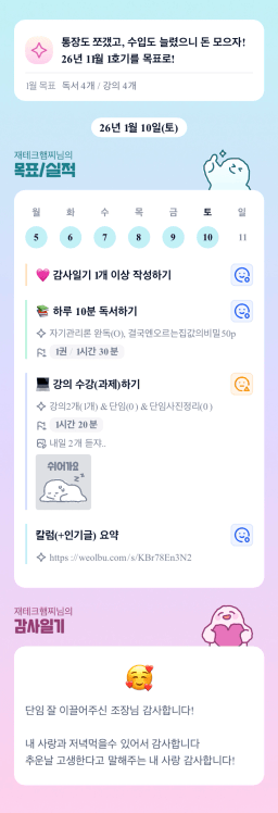 1/10일 목실감 [실준72기 경제적자유를 위해 5늘도 꾸준히하조 랭이입니다]