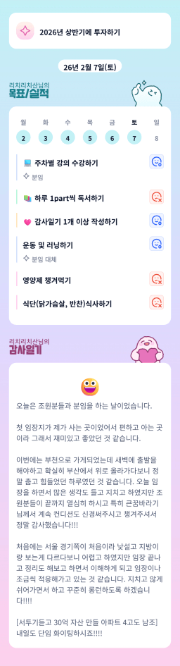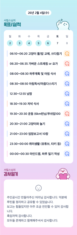 [90/14] 뉴목실감으로 다시 시작 26년 2월 7일 시작!
