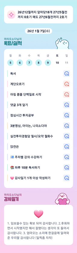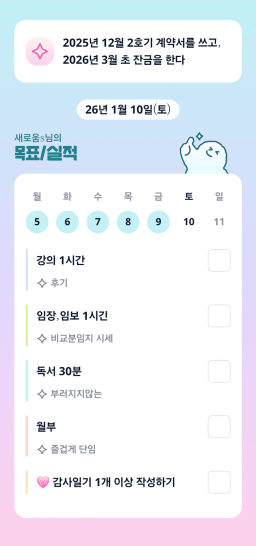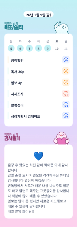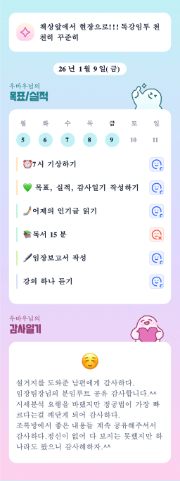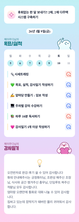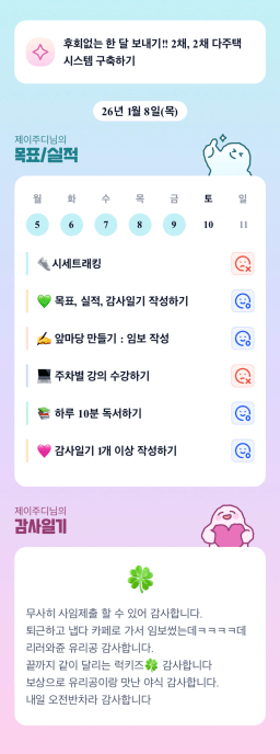 [지투27기 지금 2순간 아라메르 튜터님과 함께라면 4채도 거뜬하조 행동하기] 1/8-1/9 목실감