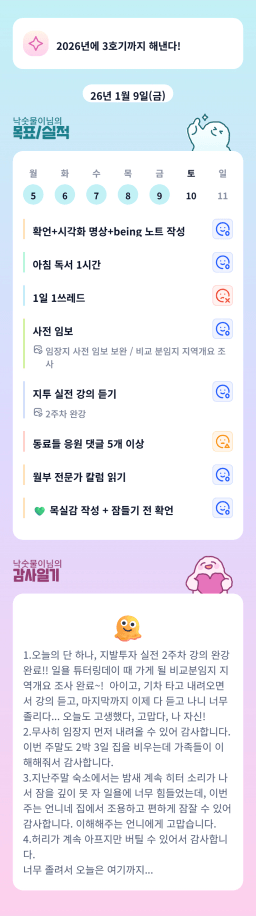 [지투실전 27기 쑤튜님과함께 🌱쑤욱쑤욱 성장하는 2린0ㅣ들 바스크치즈] 260109 목실감