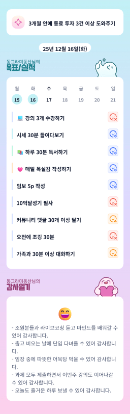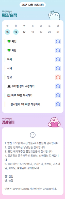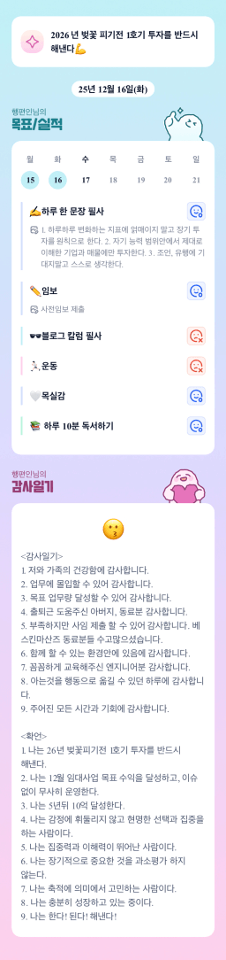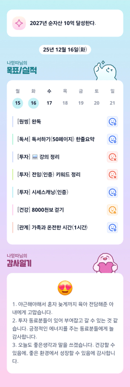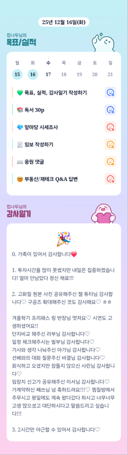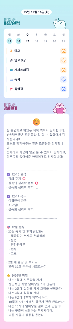 2025.12.16~17. 목표실적 #349~350 [너라는 위대함을 믿어 🩷 큄주술]