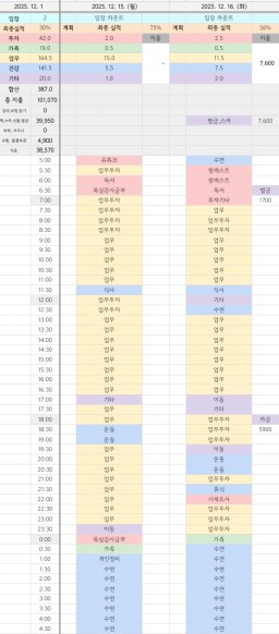 2025.12.16~17. 시간금전가계부 #349~350 [너라는 위대함을 믿어 🩷 큄주술]