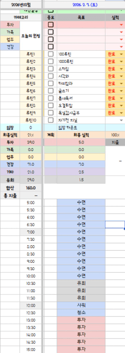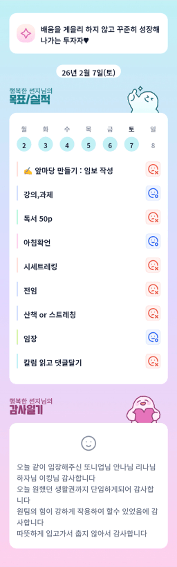 [실전 34기 인디록으로 자산 13배 흐름 만들조 홍드림] 2/7실적 및 2/8목표, 감사일기