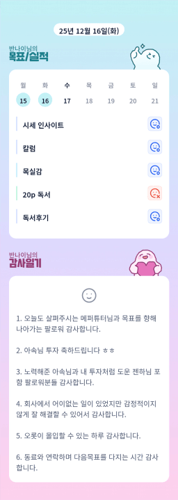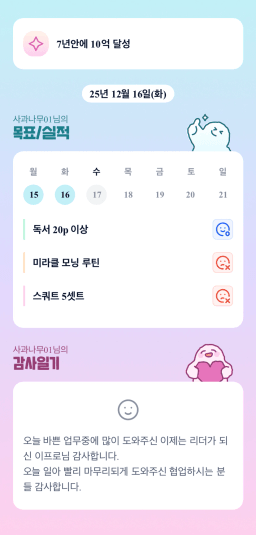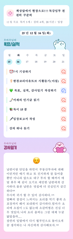 2025.12.16~17. 목표실적 #349~350 [너라는 위대함을 믿어 🩷 큄주술]