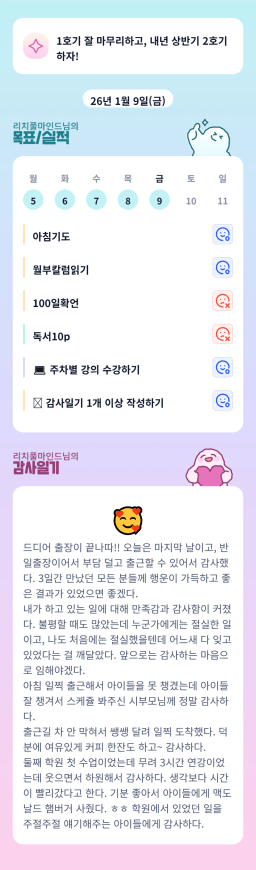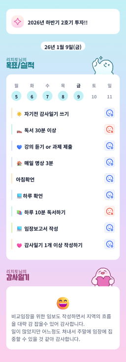 [지투실전 27기 쑤튜님과함께 🌱쑤욱쑤욱 성장하는 2린0ㅣ들 리치토]26.01.09. 목실감