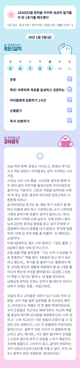 [바리퐈90] 목실감 DAY 390~389(2026/1/7~1/9)
