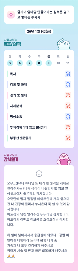 [지투실전 27기 쑤튜님과함께 🌱쑤욱쑤욱 성장하는 2린0ㅣ들 리치토]26.01.09. 목실감