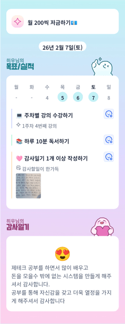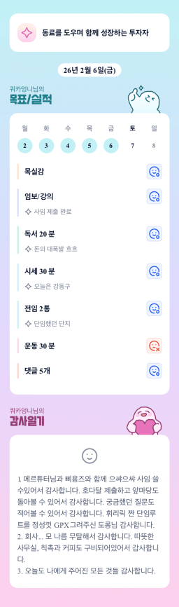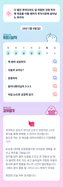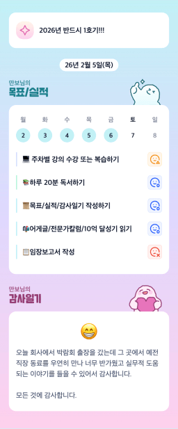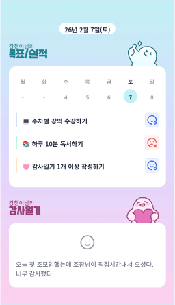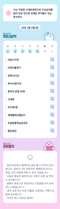 [러버블리v] 26.2.7 목표, 2.6 감사일기 + 칭반