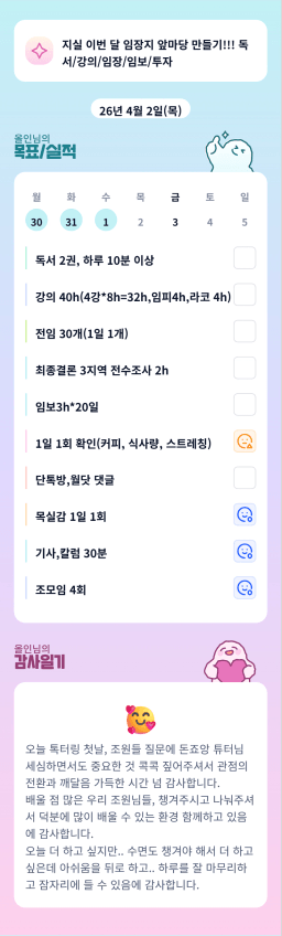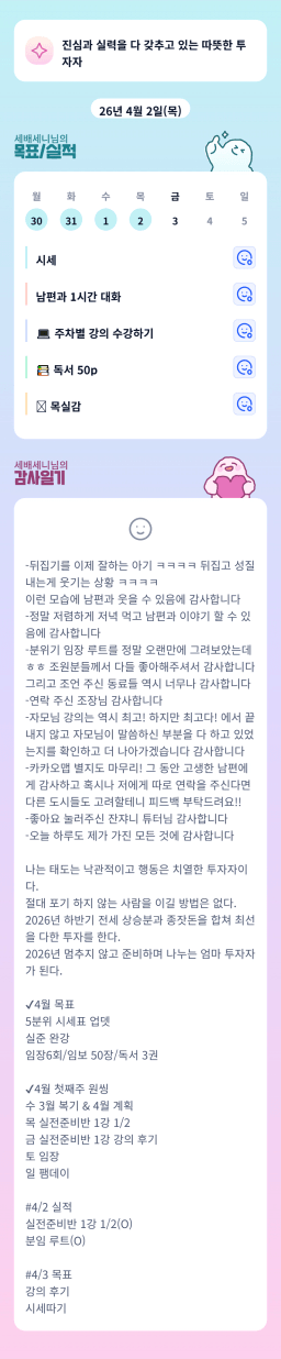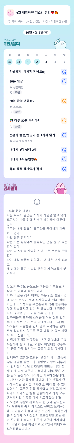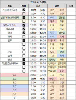 [짱이사랑맘] 4/2 목실감칭반시계부