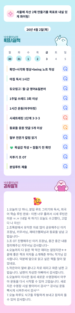 [달콤생] 4/2 목실감 누적 179일, 연속 93일 진행중