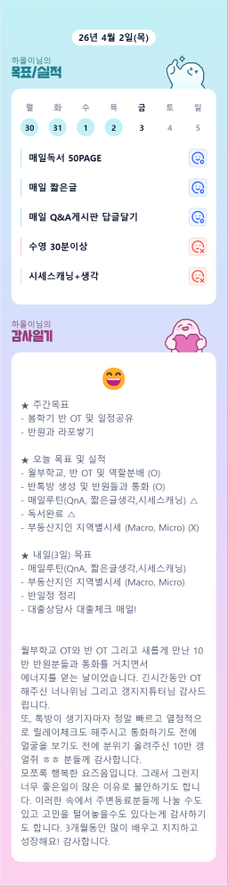 [월부학교 봄학기 9름아래 재리블라썸 요태디] 3.31.~4.2. 목실감