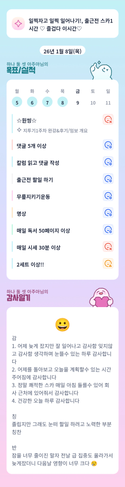 [하나 둘 셋 아주아] 26.01.08 목 목실감