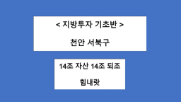 천안시 서북구 지방투자 기초반 14조 자산 14조 되조 힘내랏