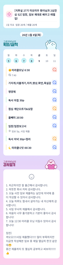 [지투실 27기 밍튜터님ㅇ1ㄹ6 밍밍할틈 어썸 미라클맘]2026.01.08 목실감