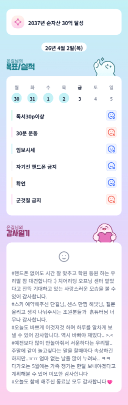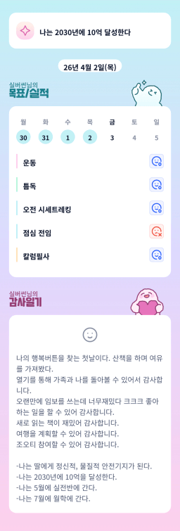 [실버썬] 4월 2일 목실감 누적 181일, 연속 13일 진행중